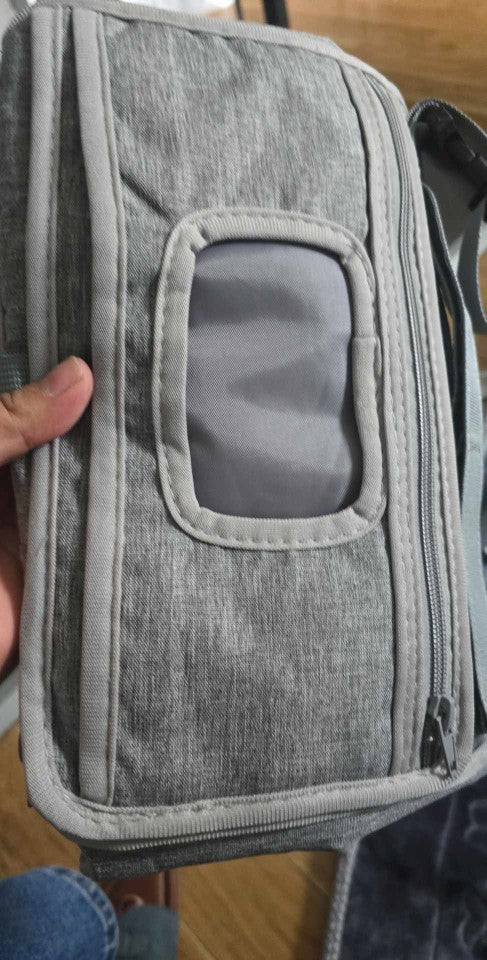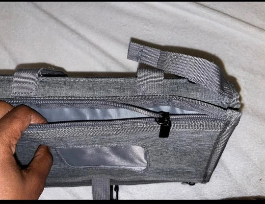 3 mesh interior pockets + wipes access + external phone/key zip |
